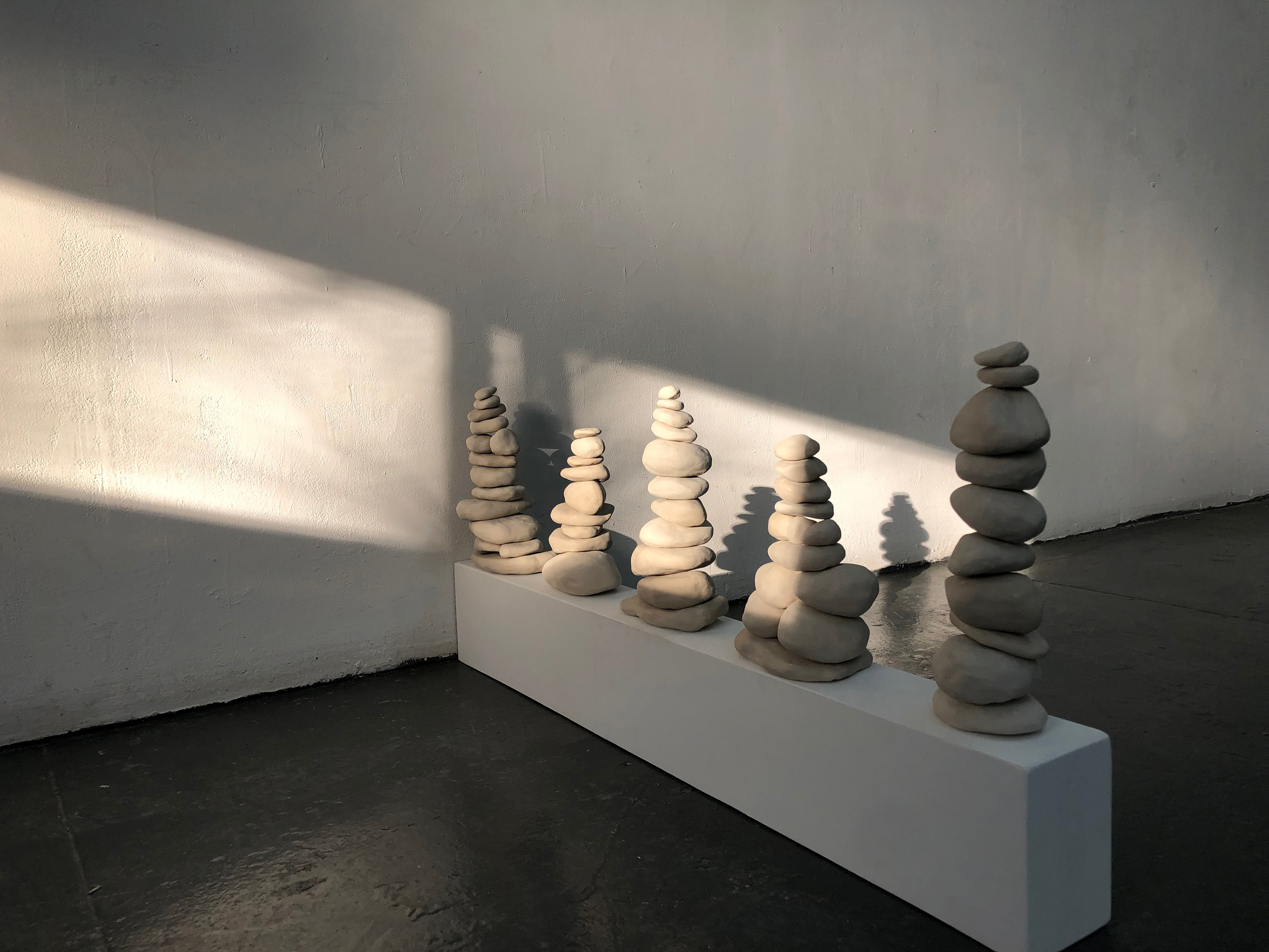 hand built clay rocks stacked