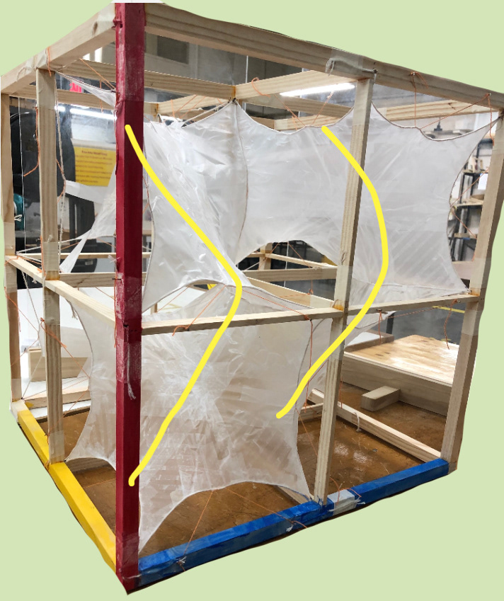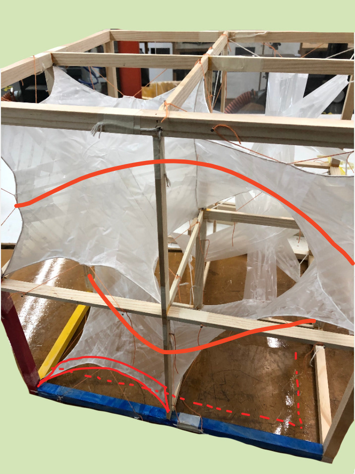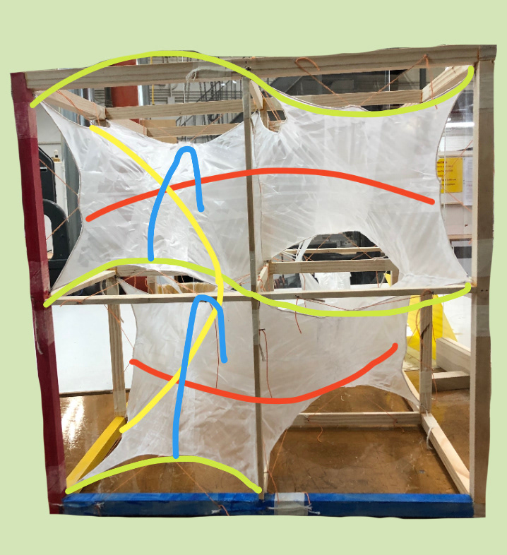 digitally rendered three dimensionally in rhino, tension with tape, string, and frame